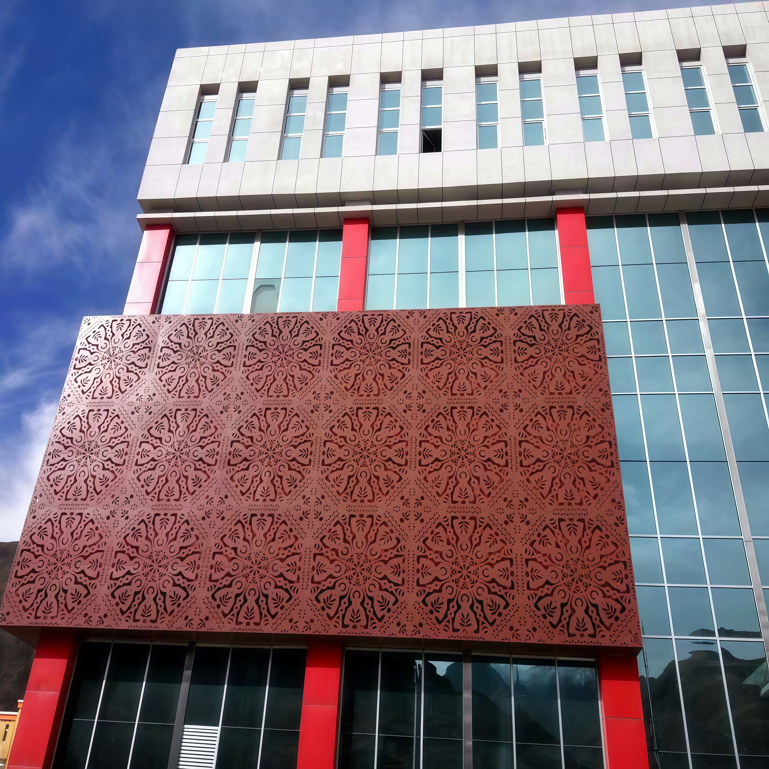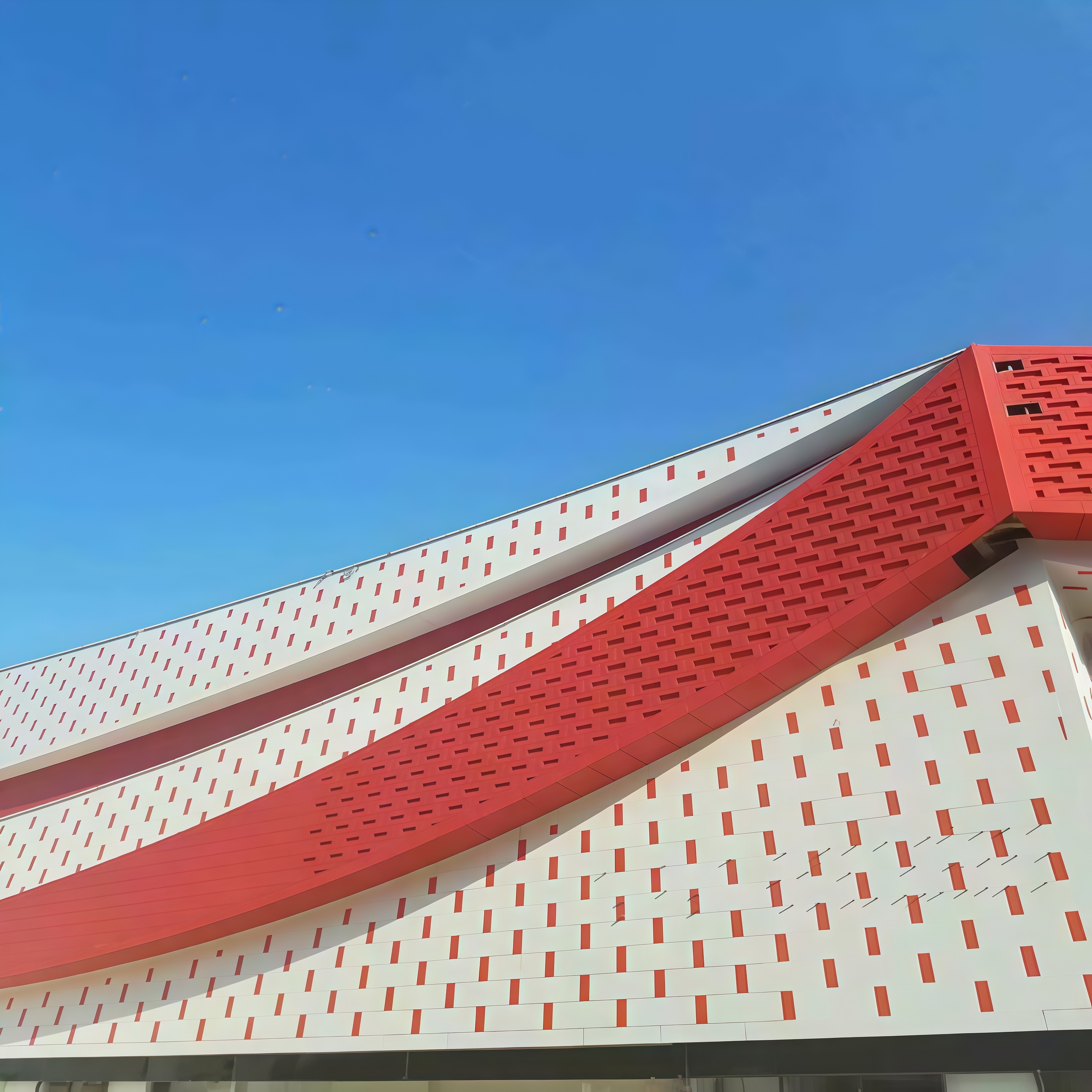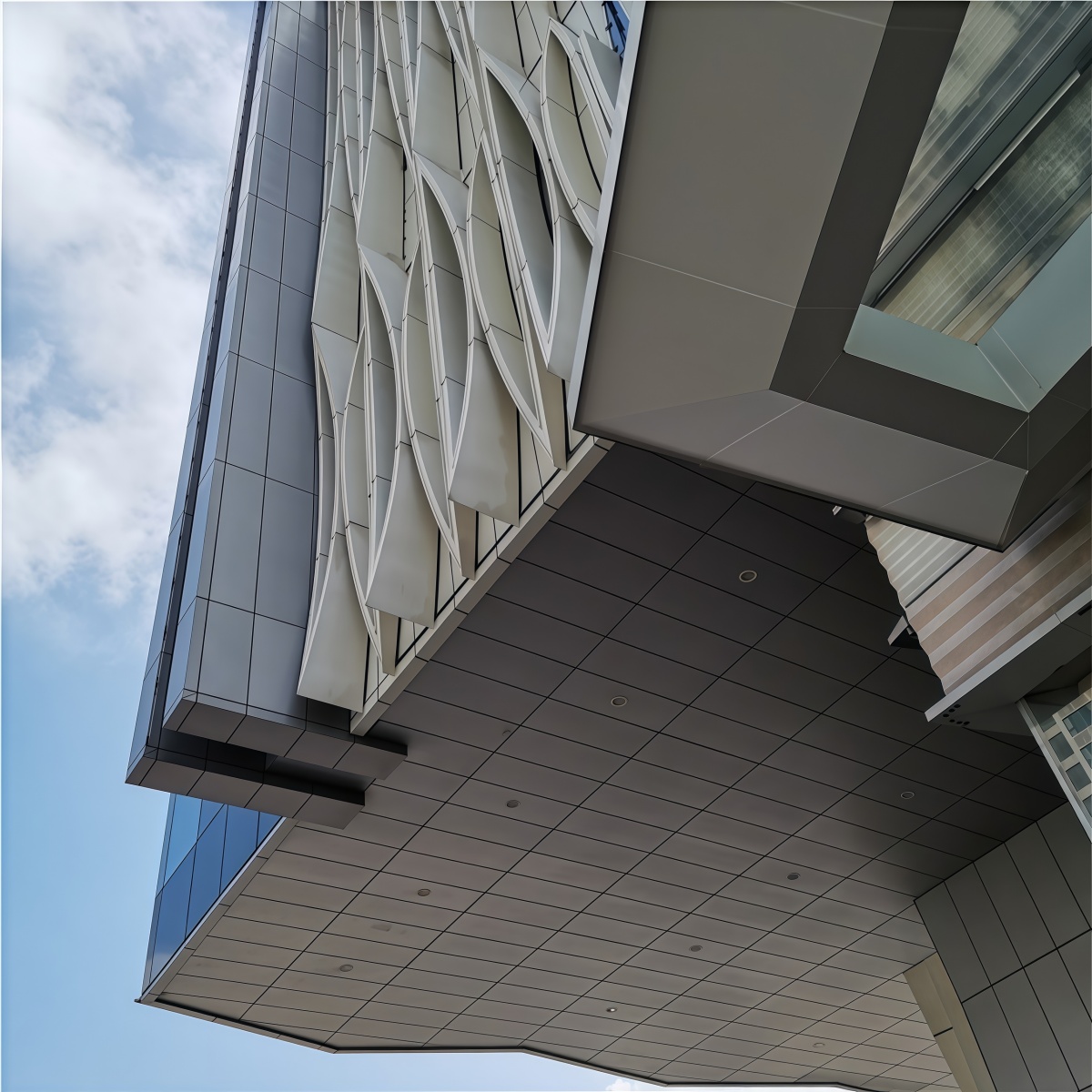Double-curved panels are aluminum sheets formed into two-direction curvature, which allows architects to create elegant “wave”, “dome”, or “free-form” facade surfaces. Compared with flat panels, double-curved designs can achieve stronger visual impact, better continuity, and a premium architectural identity.