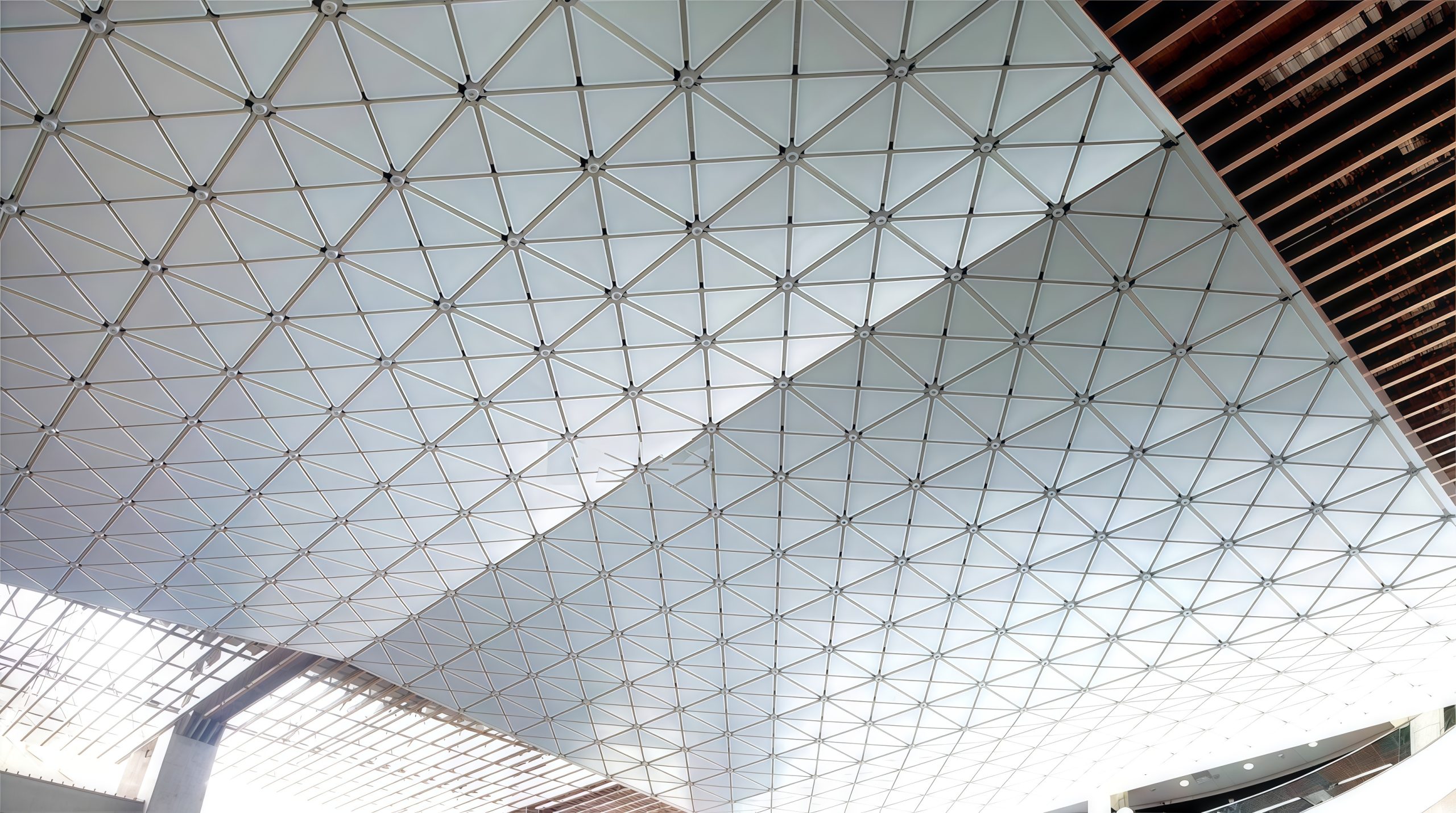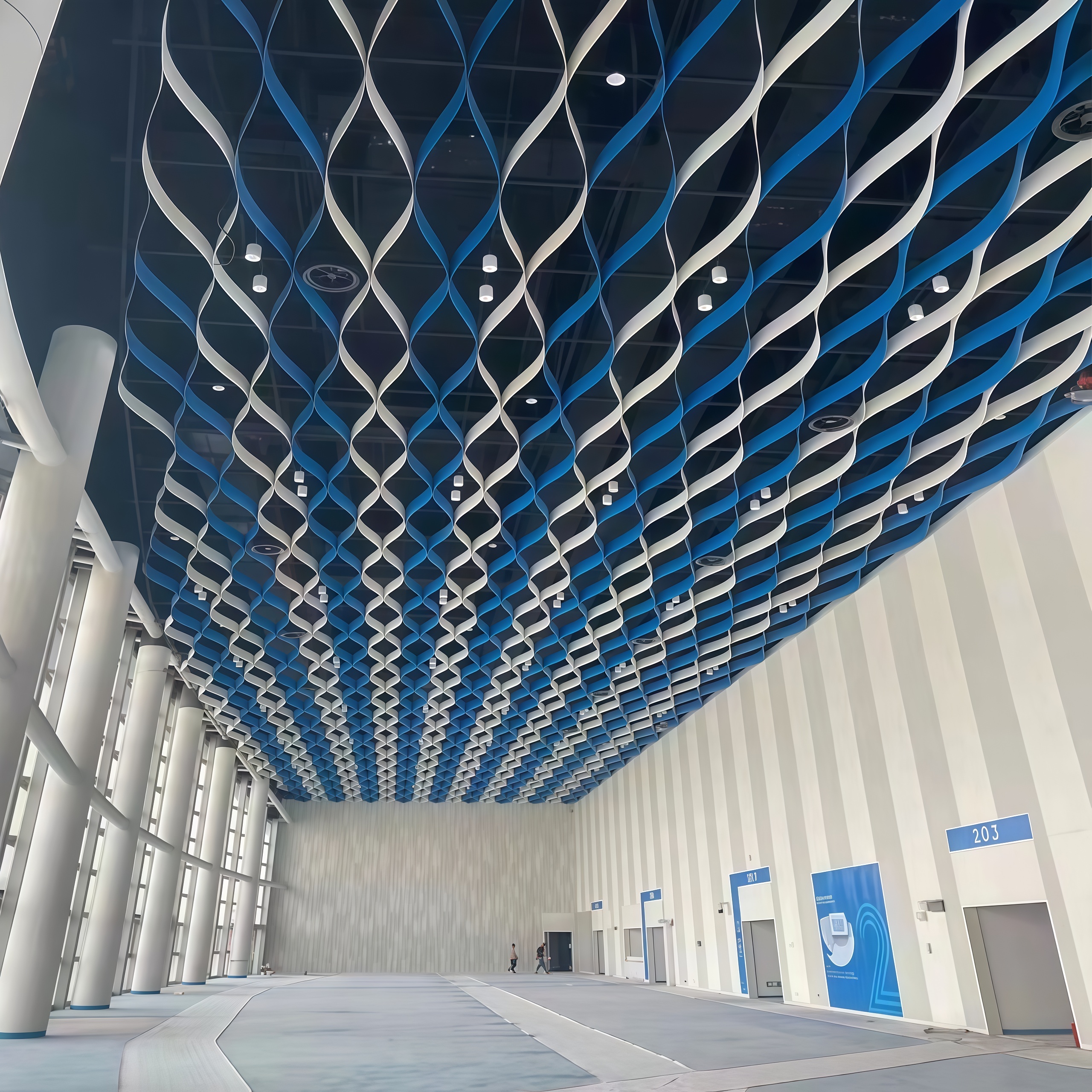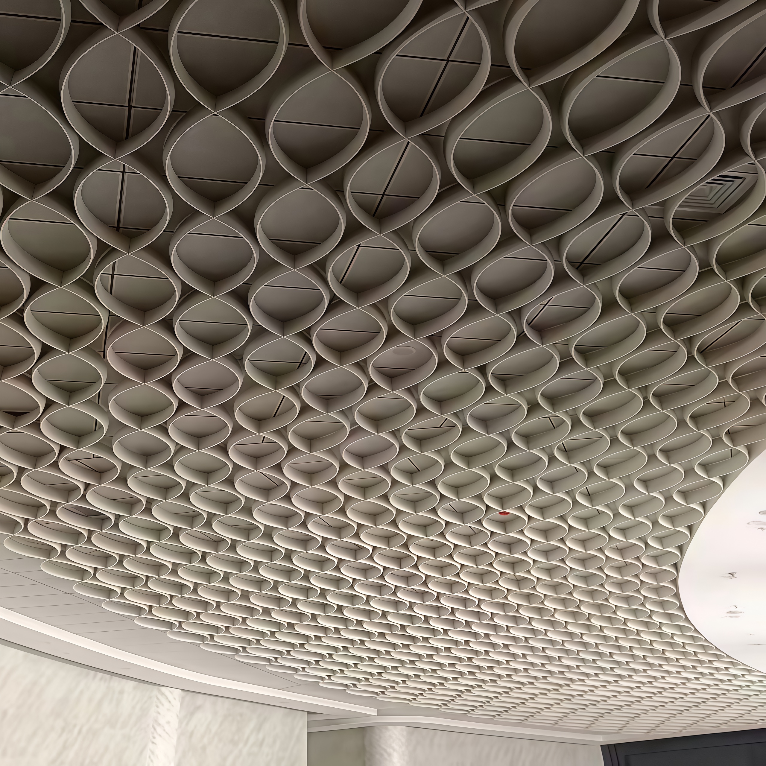 This project features an aluminum ceiling panel system suitable for flat, curved, and custom-shaped ceiling designs, with seamless integration of cove lighting, downlights, sprinklers, HVAC diffusers, and access panels. The modular structure ensures stability and easy maintenance, making it ideal for airports, metro stations, malls, offices, and public spaces. Finishes can include powder coating, PVDF, or wood-grain transfer, balancing aesthetics with long-term durability.Sizes, thickness, and detailing can be customized to ensure flatness and maintenance-friendly access.