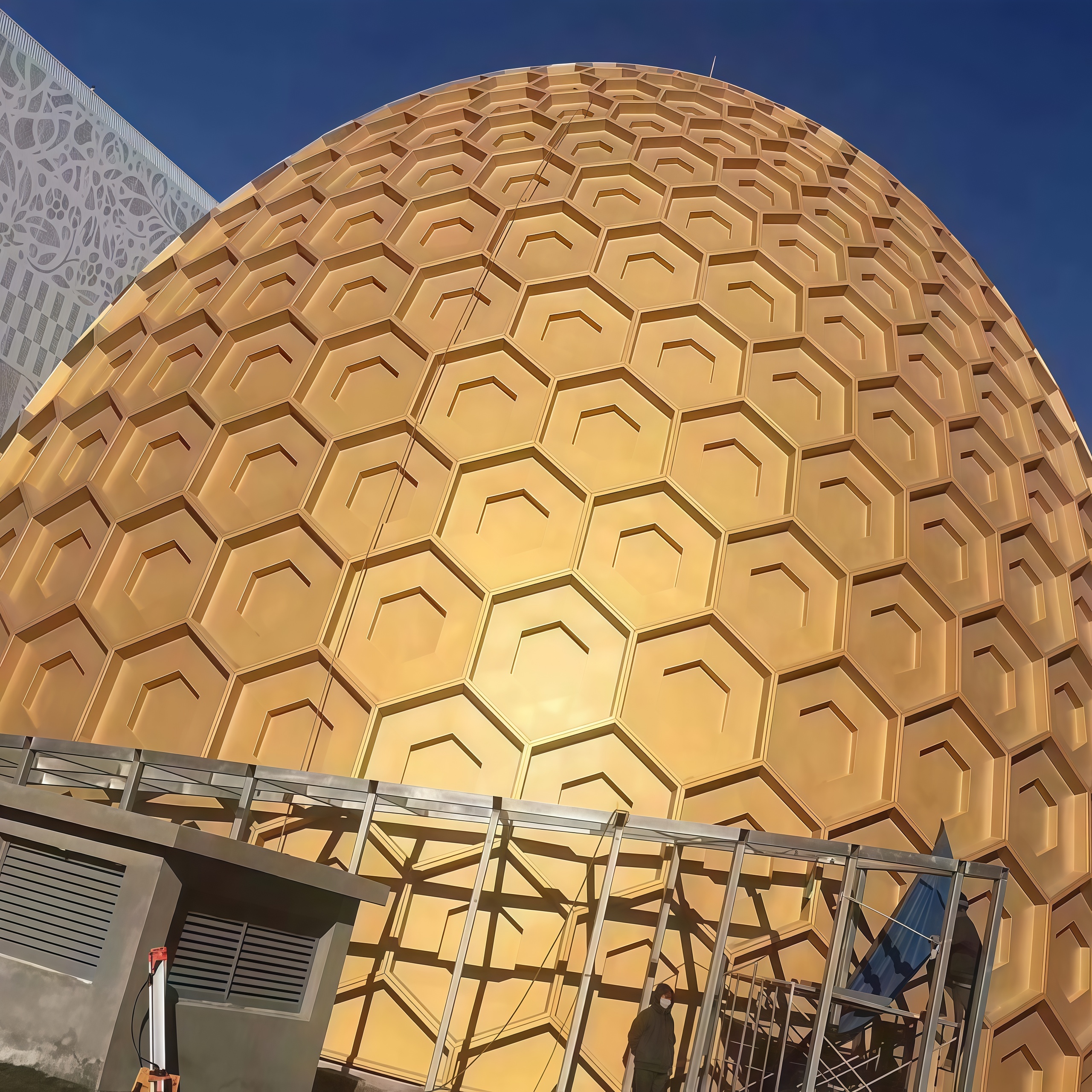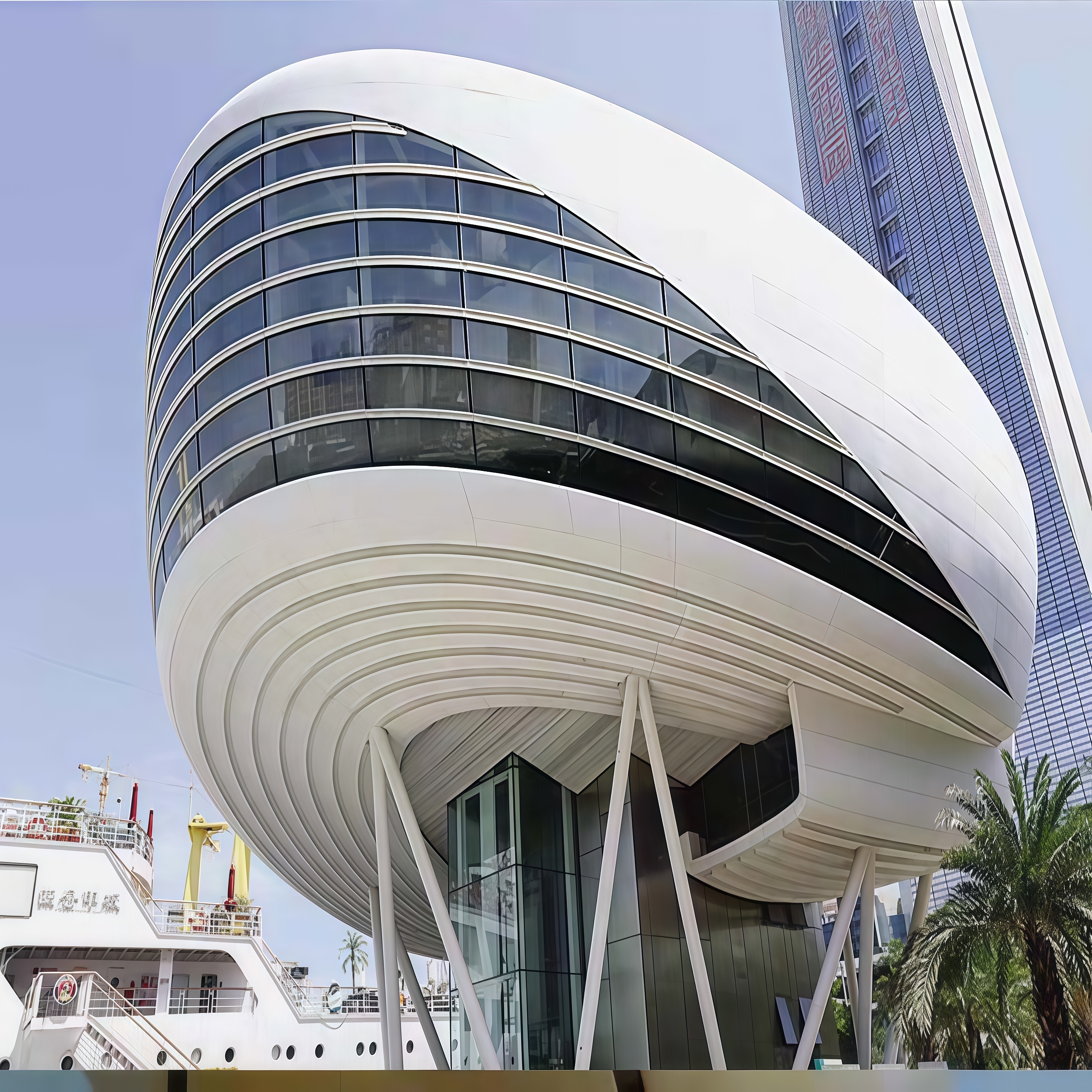 This project features a double-curved aluminum panel system for complex free-form facades and ceilings. With parametric panelization and detailed shop drawings, we optimize module size, joint alignment, and curvature transitions to deliver a continuous, unified surface. Panels are produced with high-precision CNC cutting and forming, then installed using a positioning subframe and labeled modular units to ensure efficient on-site assembly and overall flatness. Finishes such as PVDF, powder coating, or anodizing provide excellent weather resistance, corrosion protection, and low maintenance for long-term outdoor performance.